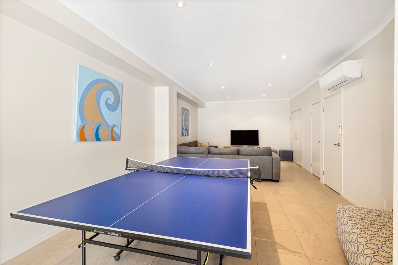 At entry level, extending from the garage is the media room with air conditioning, Foxtel channels to the TV and a Ping Pong table for endless entertainment.