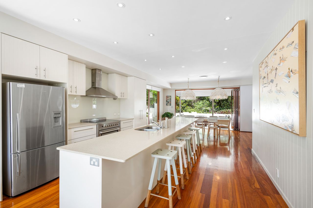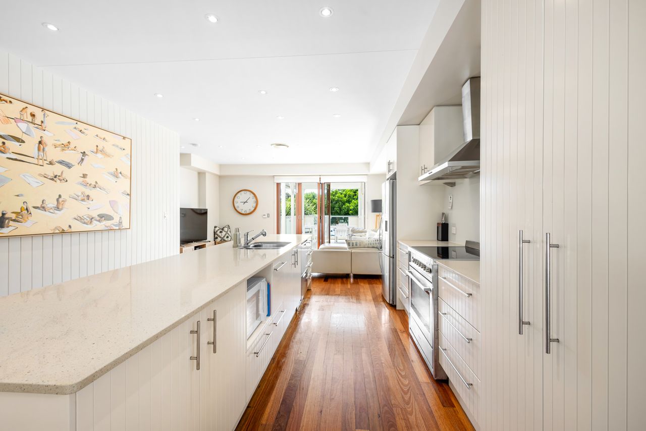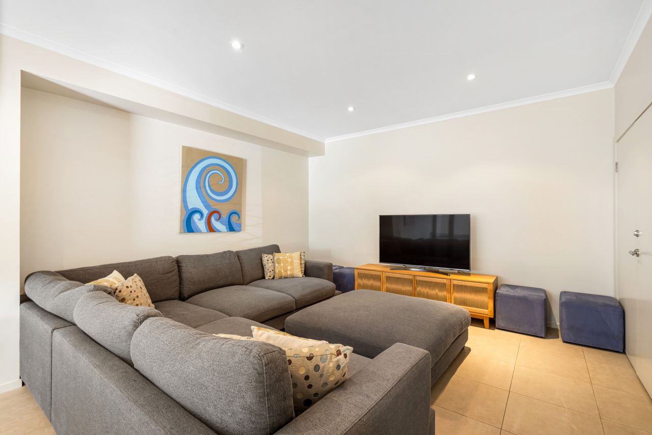 The main level boasts spacious open plan dining, kitchen and living areas with a large east facing front balcony and back patio. Enjoy glimpses of the ocean from the front balcony and step down to your private plunge pool. The back patio has outdoor lounges and sun lounges, a gas BBQ and a clothesline to access easily from the Laundry, also on this level along with a powder room.