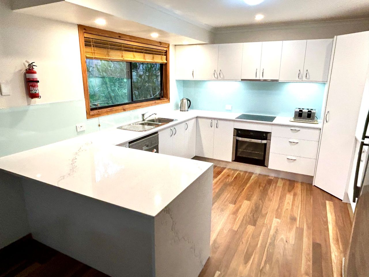 Inside, the fully equipped kitchen is a culinary haven, boasting modern amenities such as oven, electric cooktop, microwave, and fridge/freezer. Whether whipping up a quick snack or indulging in a gourmet feast, every culinary need is catered to. Additionally, full laundry facilities ensure convenience during your stay.
