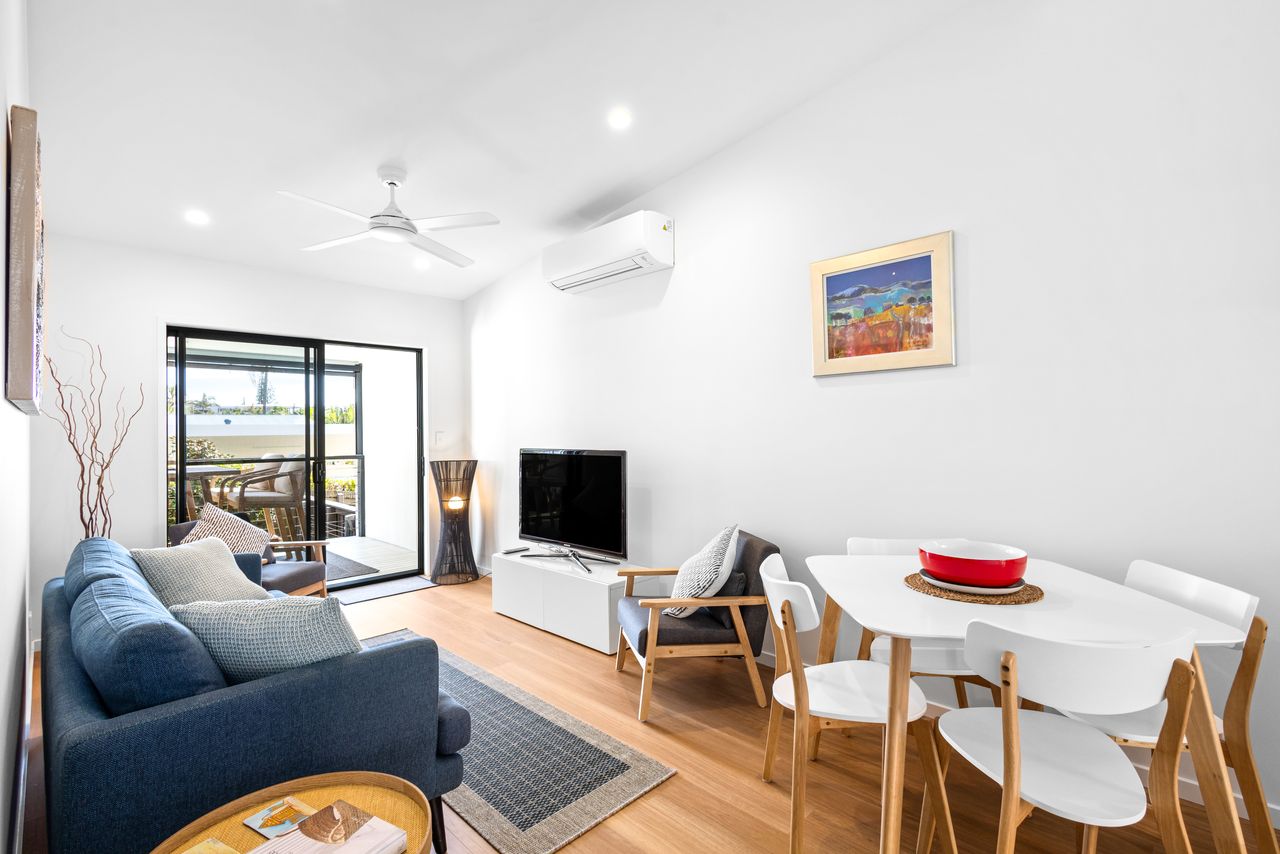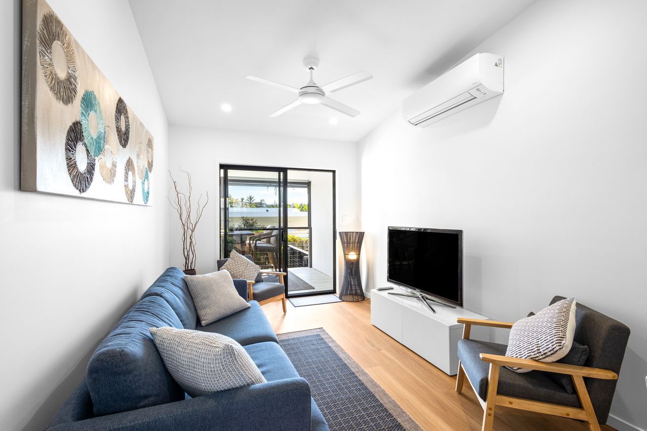 1 Escape to the pristine shores of Peregian Beach and experience the ultimate beachside retreat in this ultra-stylish, single-level apartment. Nestled in a boutique complex of just four, this near-new property offers effortless coastal living just 500m from the sand and within walking distance of the vibrant village hub