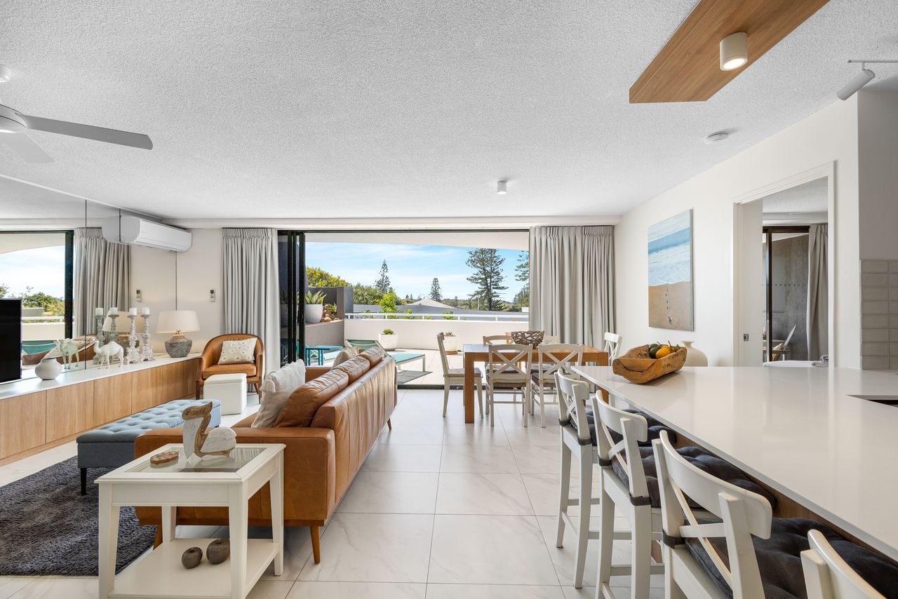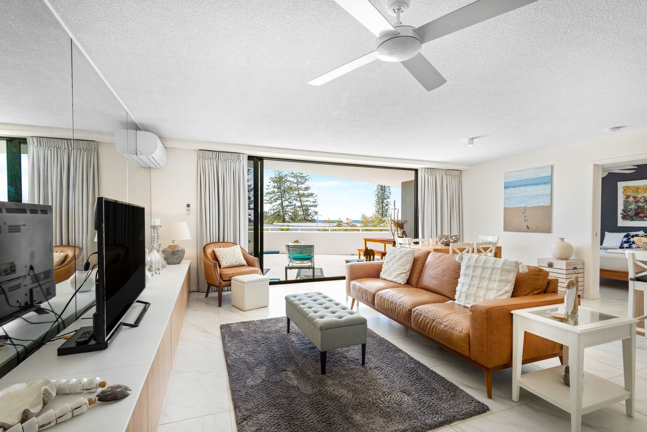Experience the epitome of beachside living at our chic and stylish apartment, perfectly positioned opposite the patrolled beach, vibrant cafes, shops, and recreational amenities of Coolum Beach. With tasteful beachy stylings, air conditioning, and breathtaking ocean views, this apartment promises a relaxed and rejuvenating beachside holiday.