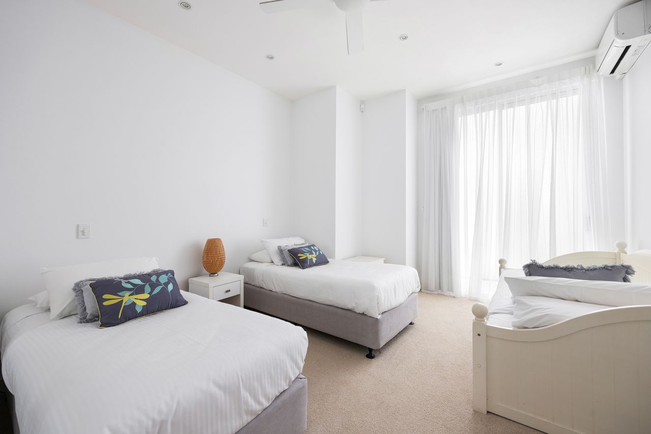 Helen M - 15th September 2025We were a group of 4 friends and this house was perfect for our bi-annual catch up. Two spacious rooms have ensuites and WIRs. The other two bedrooms are a good size (one had two single beds and the other had three single beds) and share the family bathroom. There is also a separate toilet on the entrance landing. The views from the upper living area are stunning and we loved relaxing and watching the whales. The location is perfect with a short stroll to the Peregian Village.