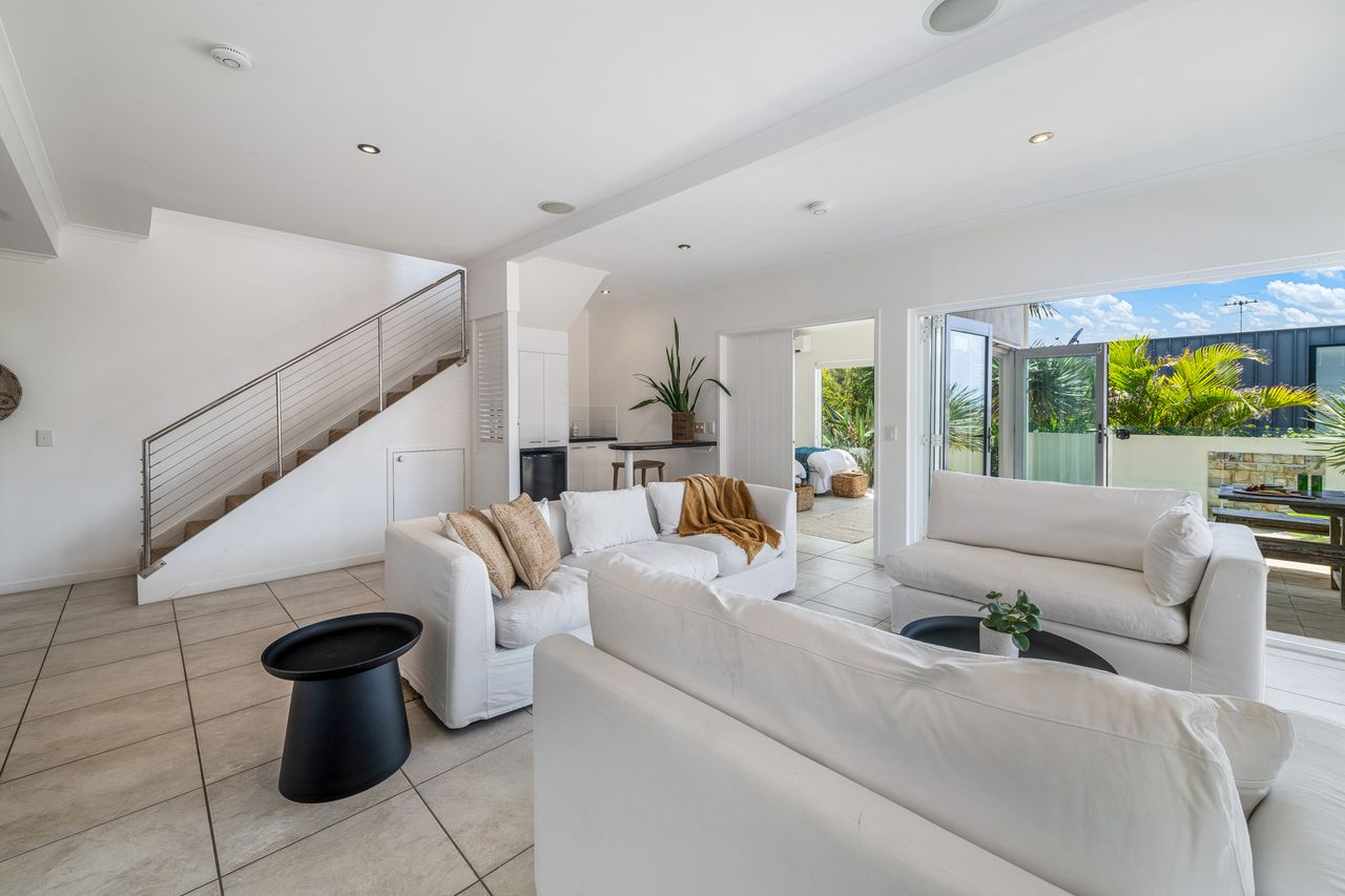 Step through solid timber doors to discover airy living spaces framed by bi-fold doors, high ceilings, and wide terraces that draw in sunshine and sweeping views of the Pacific. With its chic neutral palette, ocean outlooks, and seamless indoor-outdoor flow, this home is a sanctuary for families and friends alike.